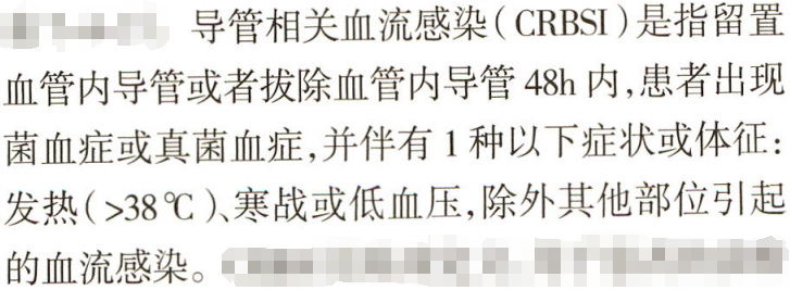 - 至少两份血培养结果(一份来自于导管腔,一份来自于外周静脉)培养出同一种微生物,且满足定量血培养或差异报警时间的标准
