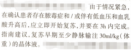 脓毒症相关低血压患者在最初3h内给予30ml/kg的晶体液输注的液体复苏